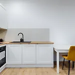 Es gibt eine Küchenzeile, die mit einem Herd und einem Geschirrspüler ausgestattet ist. Die Unterkünfte ist 15 Autominuten vom Flughafen Lodz entfernt.